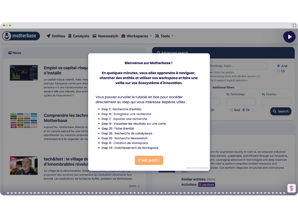Aujourd'hui, Motherbase détecte les technologies des startups et entreprises et en compte aujourd'hui une trentaine. Elles nous aident à mieux appréhender les solutions proposées, à rechercher celles qui nous intéressent et à les organiser de manière efficace.